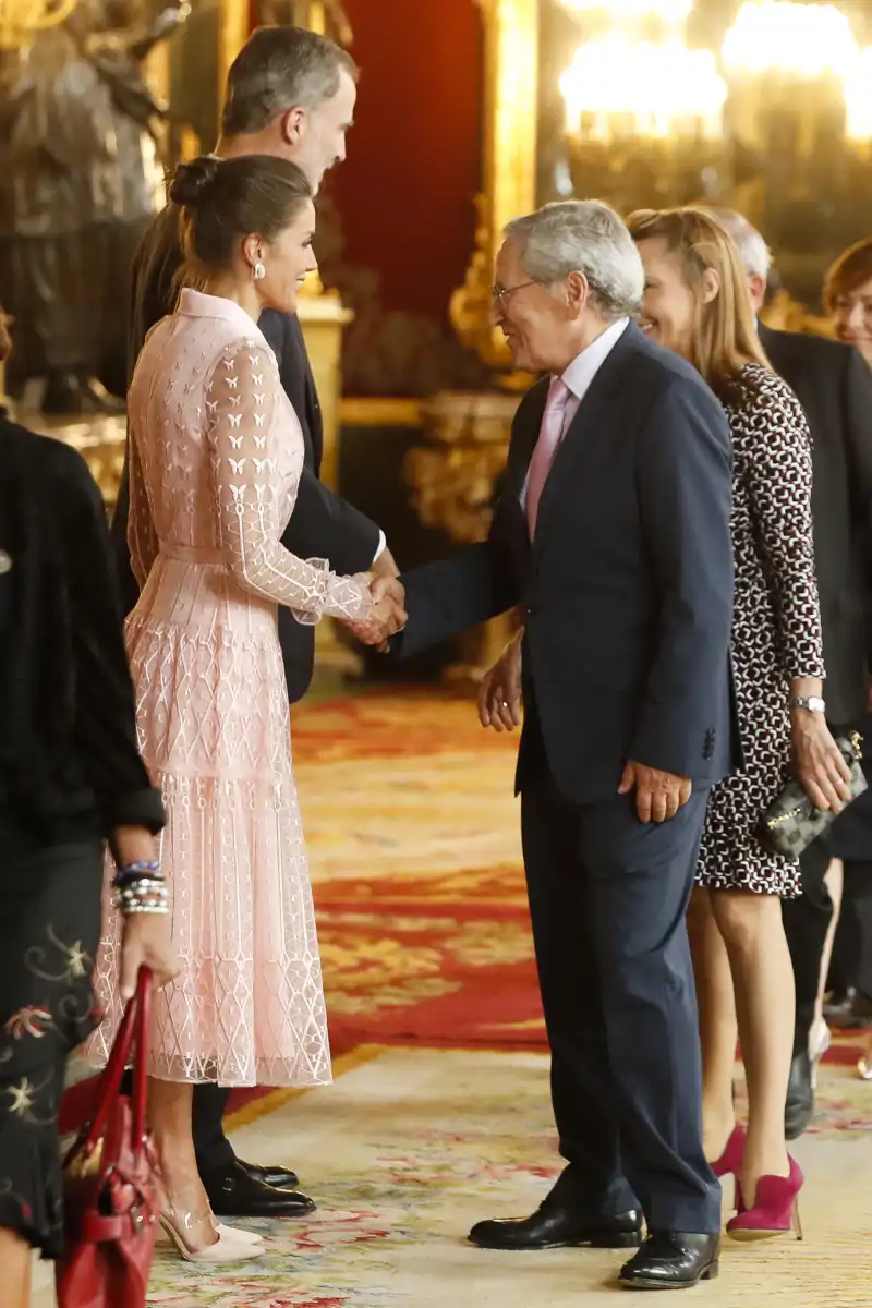 Fernando Ónega saludando a la Reina Letizia en el Palacio Real por el Día de la Hispanidad en 2019