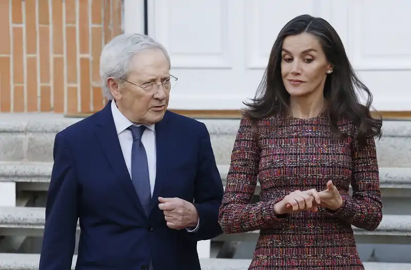 Fernando Ónega y la Reina Letizia a la salida de una audiencia en Zarzuela