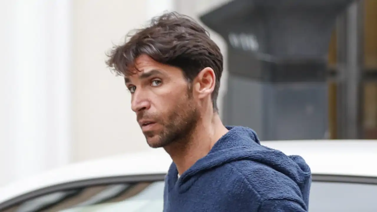 Cayetano Rivera con gesto serio dando un paseo por Madrid con Tamara Gorro.