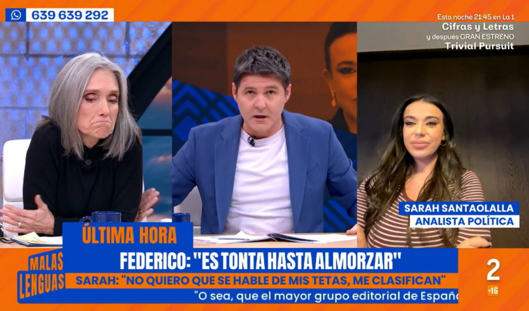 Jesús Cintora ha frenado en seco a Montserrat Nebrera en ‘Malas Lenguas’ por llamar “tonta”a Sarah Santaolalla tras lo de Rosa Belmonte en ‘El Hormiguero’.