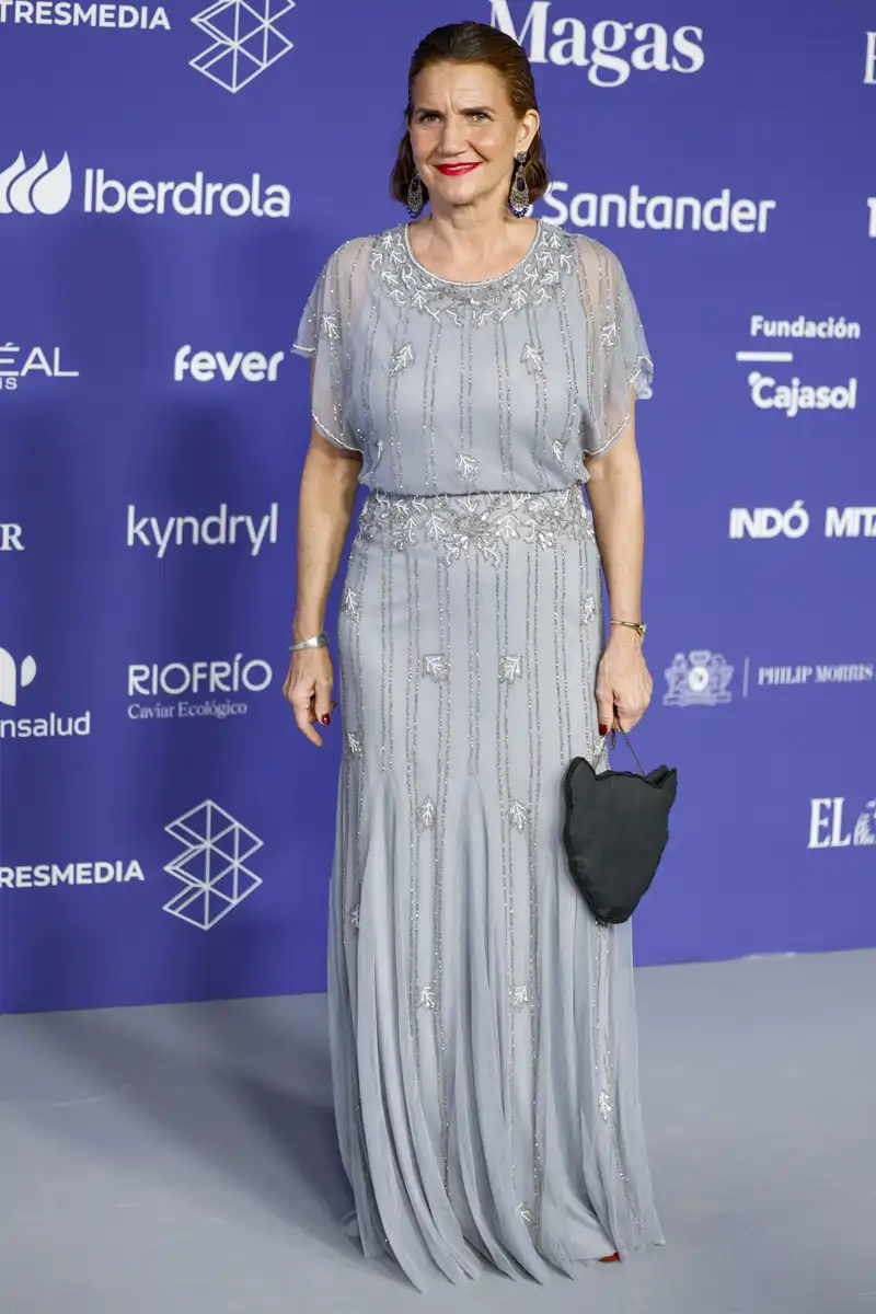 La chef se ha mantenido fiel a su estilo apostando por un elegantísimo vestido gris con detalles plateados. Una prenda sofisticada a la que ha sacado el máximo partido al combinarla con grandes complementos y un original bolso negro.