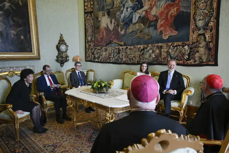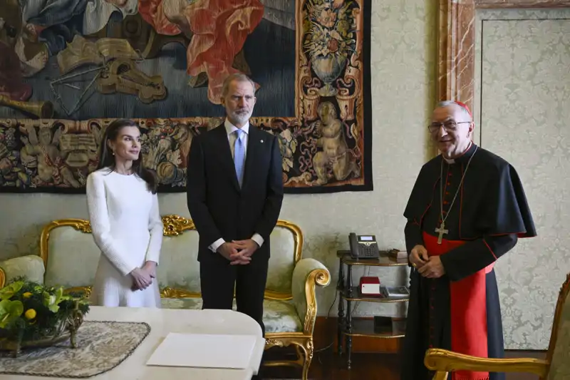 Tras el encuentro con el pontífice, los Reyes Felipe y Letizia se han reunido con el cardenal Pietro Parolin, Secretario de Estado, y monseñor Paul Richard Gallagher, Secretario de la Sección para las Relaciones con los Estados.