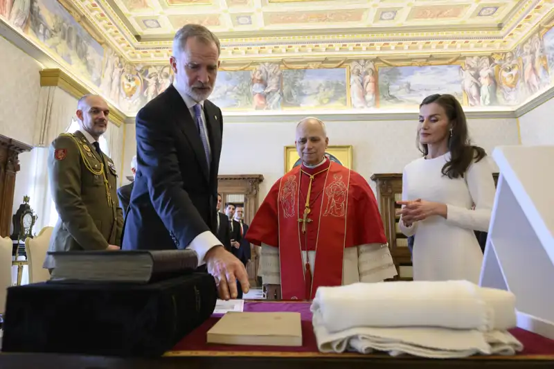 Tres escenarios e intercambio de obsequios: el encuentro de los Reyes Felipe y Letizia con el Papa León XIV en el Vaticano, en imágenes