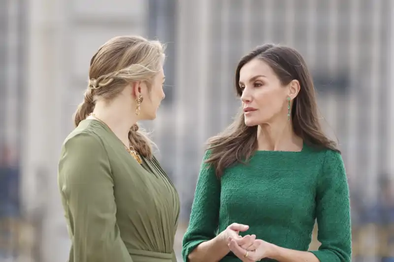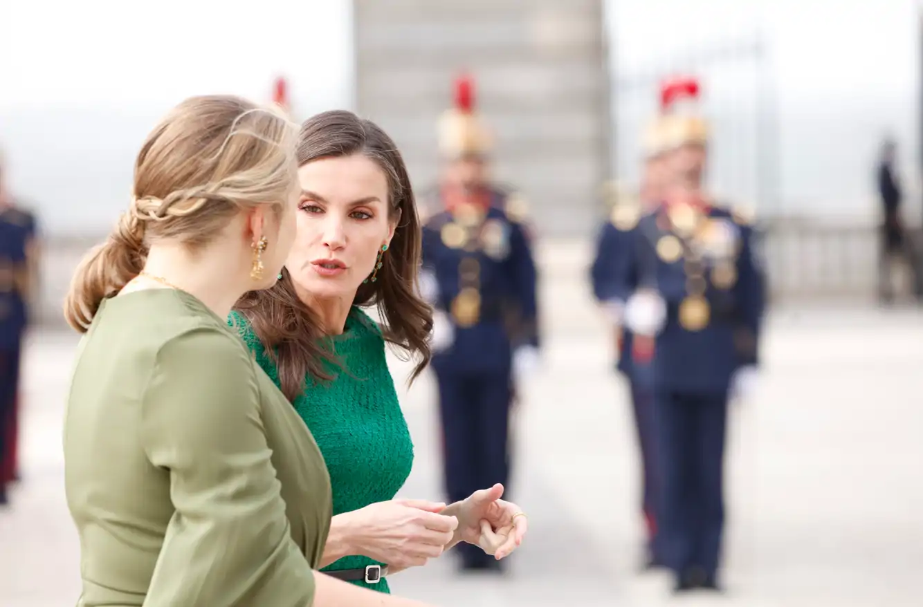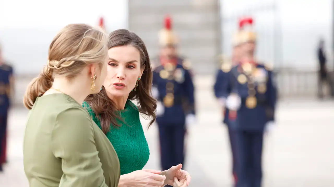 Doña Letizia en el Patio de Armas del Palacio Real charla con la Gran Duquesa de Luxemburgo