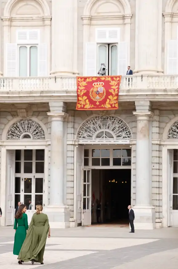 Doña Letizia y la Gran Duquesa de Luxemburgo de espaldas, a punto de entrar por la puerta principal del Palacio Real de Madrid