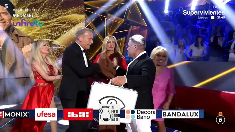 Jorge Javier les ha interrumpido para hacer entrega al ganador de su maletín, mientras que Anita ha sido abrazada por sus compañeros. Calos Lozano ha comenzado a jugar con la manta, momento en el que sus compañeros le han felicitado, especialmente Belén y Carmen, quien no han podido evitar saltar con su amigo.