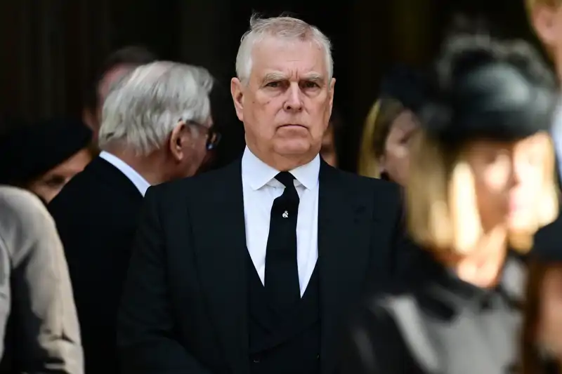 Andrés de Inglaterra, con semblante serio en el último adiós a la duquesa de Kent. El hermano de Carlos III ha sido detenido el 19 de febrero de 2026, coincidiendo con la fecha de su cumpleaños.