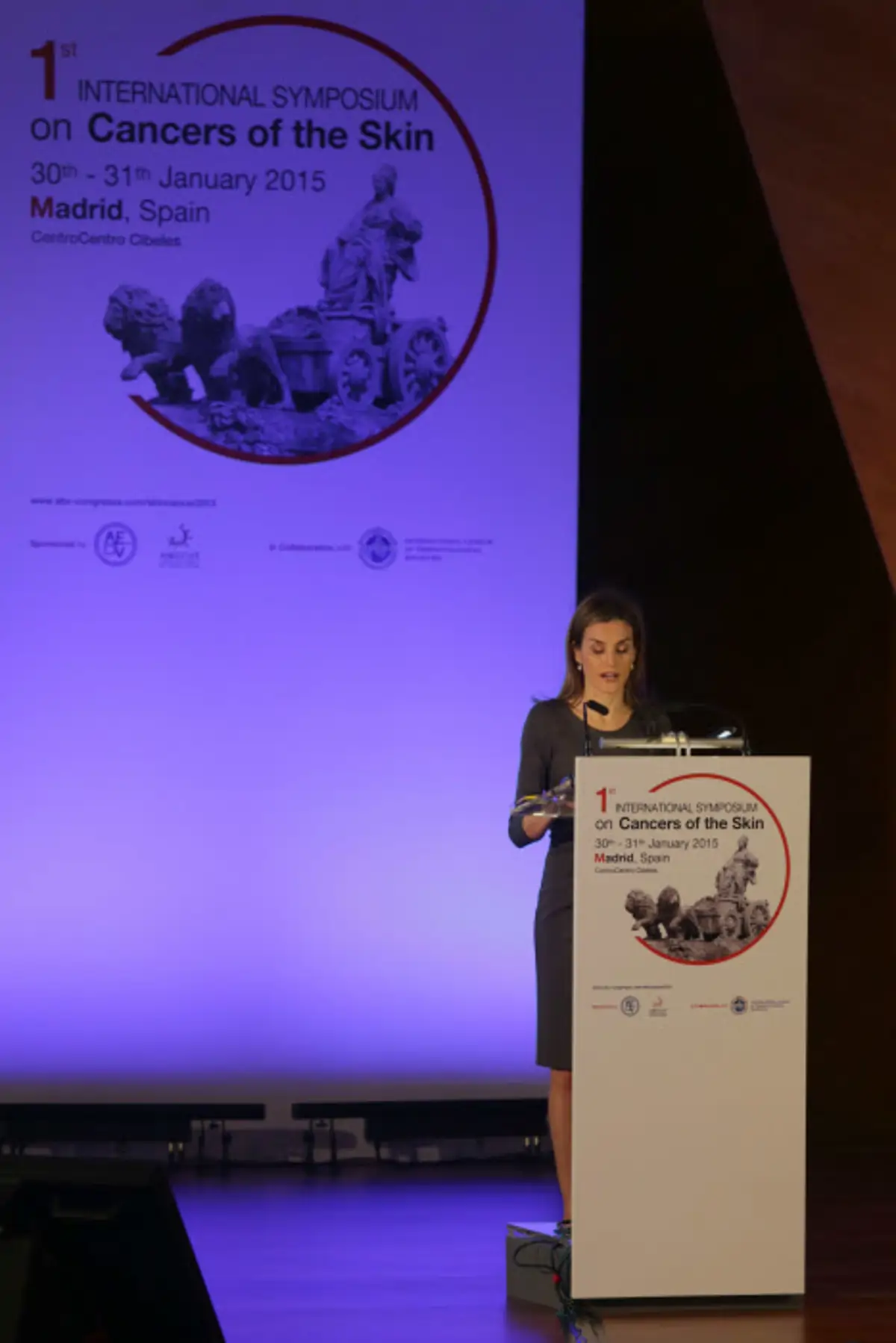 Letizia presidió la apertura de este foro, que presentaba los últimos avances y nuevas terapias para la prevención, diagnóstico precoz y tratamiento de los diferentes tipos de cáncer de piel.