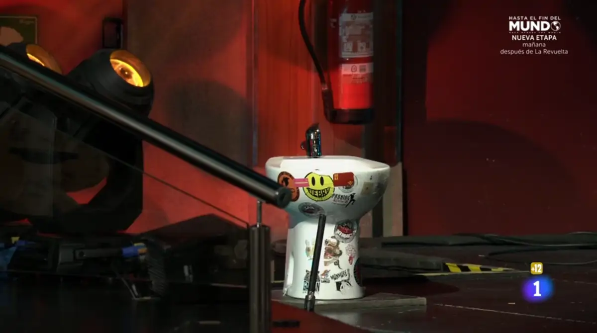 En ese instante, el propio presentador ha mirado hacia atrás para comprobar que efectivamente el bidé estaba vacío.