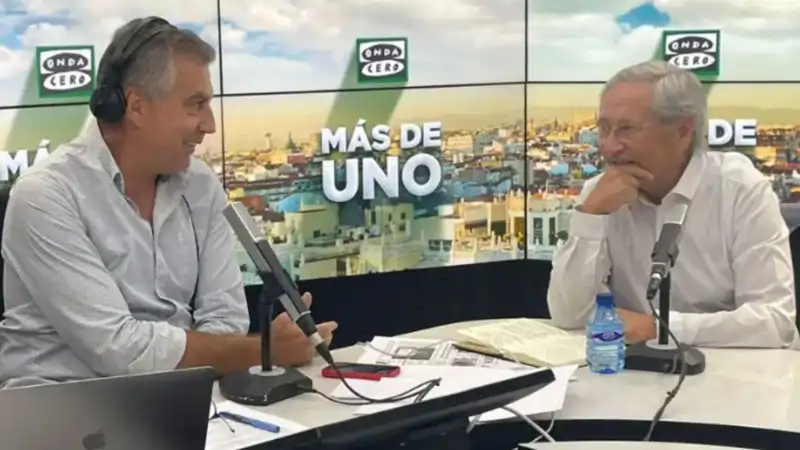 Carlos Alsina y Fernando Ónega durante una entrevista del primero a su maestro en el programa Más de uno, que presenta Alsina en Onda Cero todas las mañanas, de lunes a viernes.