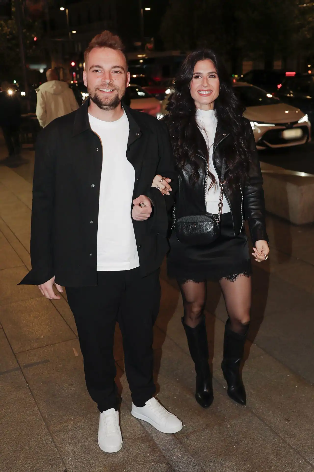 José María Almoguera y María Sánchez a las afueras del cumpleaños de Belén Rodríguez.