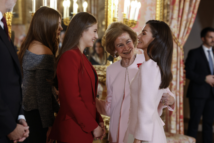 La reina Sofía, protagonista ante la ausencia del emérito: halagos, aplausos y el cariño de Letizia y Leonor.