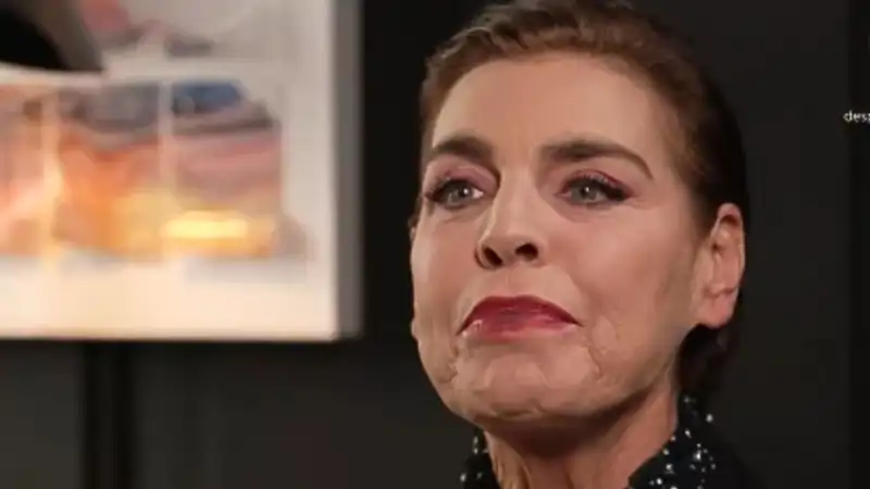 Antonia Dell’Atte, muy compungida, en un momento de una reciente entrevista. Las declaraciones de la italiana han provocado el despido fulminante de Alessandro Lequio.