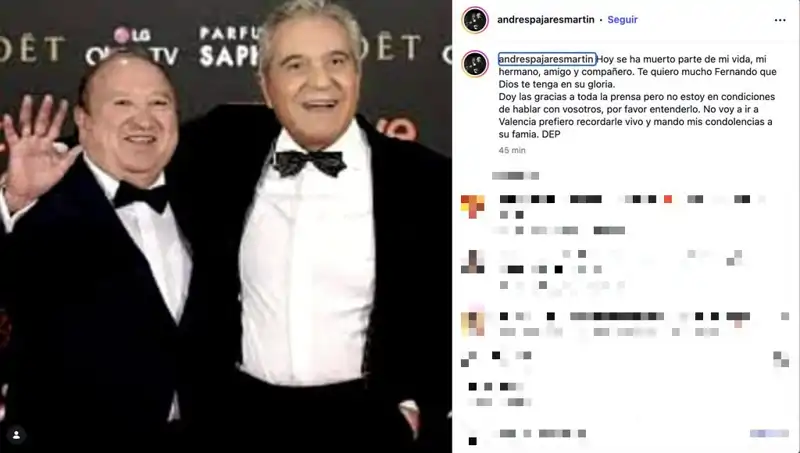Sin embargo, ha sido el propio Andrés Pajares quien ha reaparecido minutos después en redes sociales para compartir una preciosa carta de despedida a Fernando Esteso.