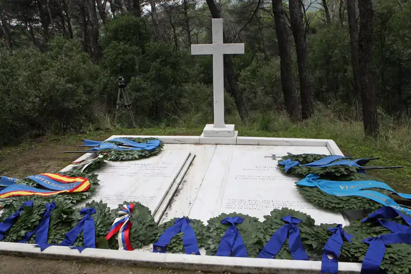 La tumba del rey Pablo de Grecia, padre de la Reina Sofía, junto a la de su mujer, Federica de Grecia, situada en los alrededores del Palacio de Tatoi, en el norte de Atenas, donde descansan los miembros de la familia real del país mediterráneo.