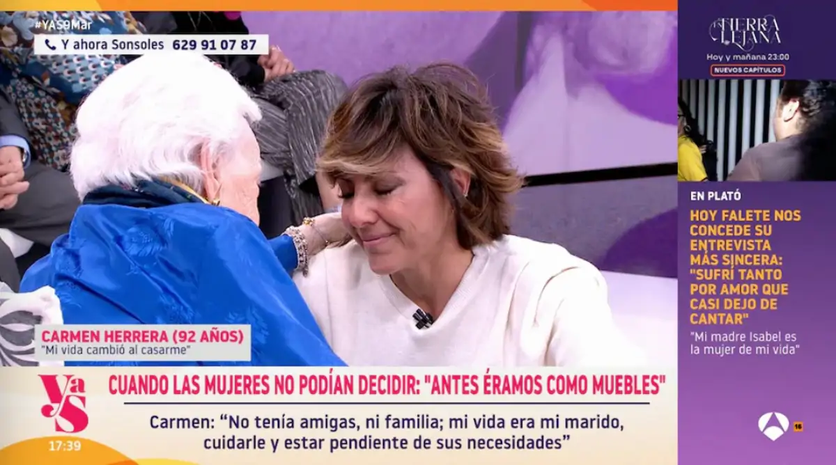 Antes de estas conmovedoras palabras, mientras comentaban la reciente entrevista de Lola Herrera en ‘Lo de Évole’, Sonsoles se ha levantado para interactuar con el público. Antes de dar paso a Sofía, una señora mayor que iba a hablar sobre su vida junto a su marido, ha querido dirigirse directamente a la presentadora. “Me encanta verte siempre en la televisión”, ha comenzado diciendo con cariño. Pero lo que ha venido después ha sido lo que ha terminado desarmando a Sonsoles: “Siento muchísimo lo de tu papá, mucho hija, mucho”.