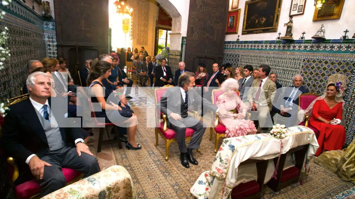 El duque de Huéscar, hijo mayor de Cayetana, fue quien la llevó al altar, tal y como ya hizo décadas antes, en 1978, en su boda con Jesús Aguirre.