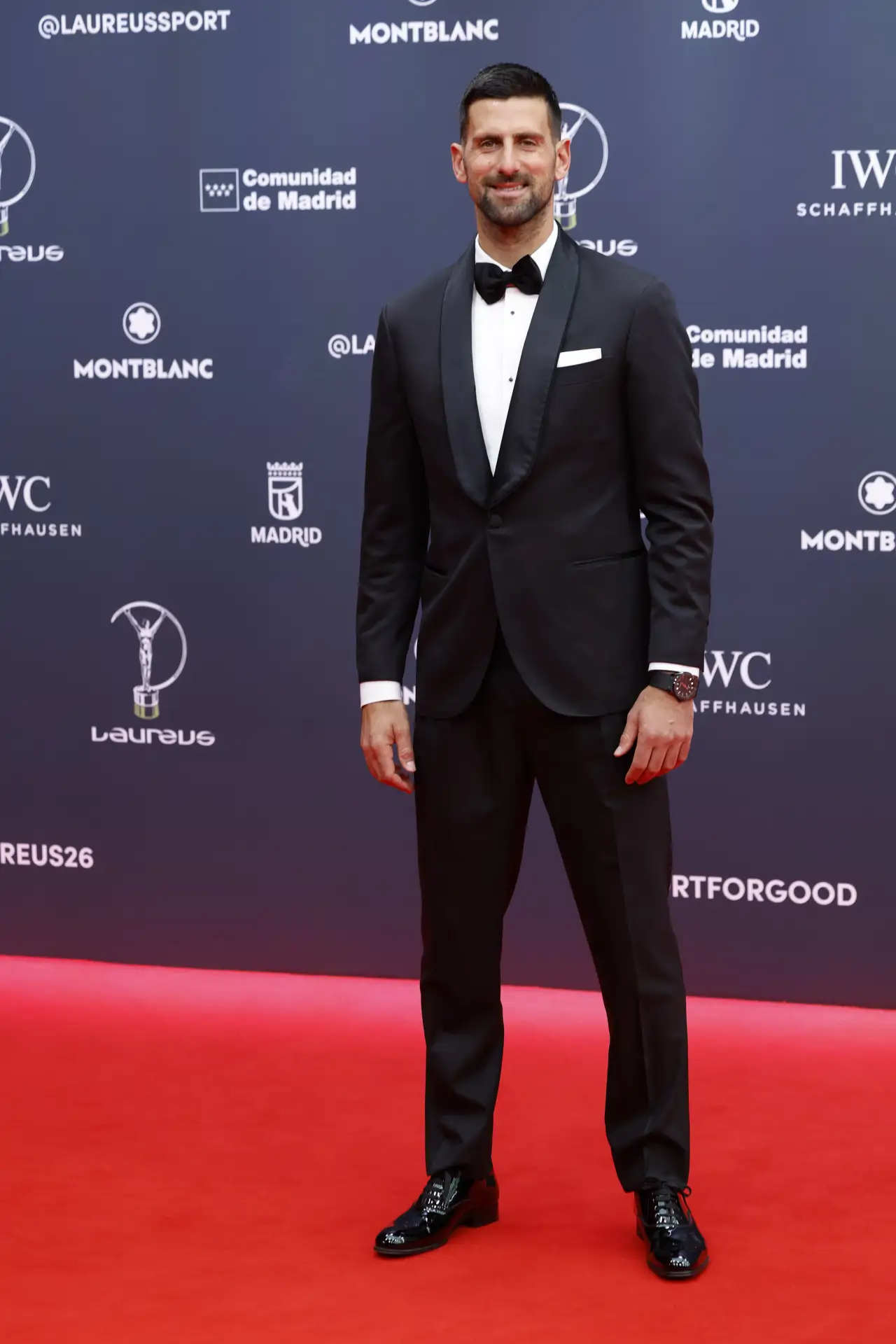 El tenista serbio es el maestro de ceremonias de los Premios Laureus 2026, y se ha optado por un traje en color negro, con solapa satinada.