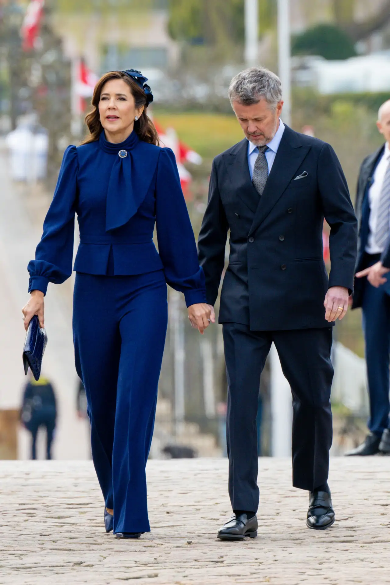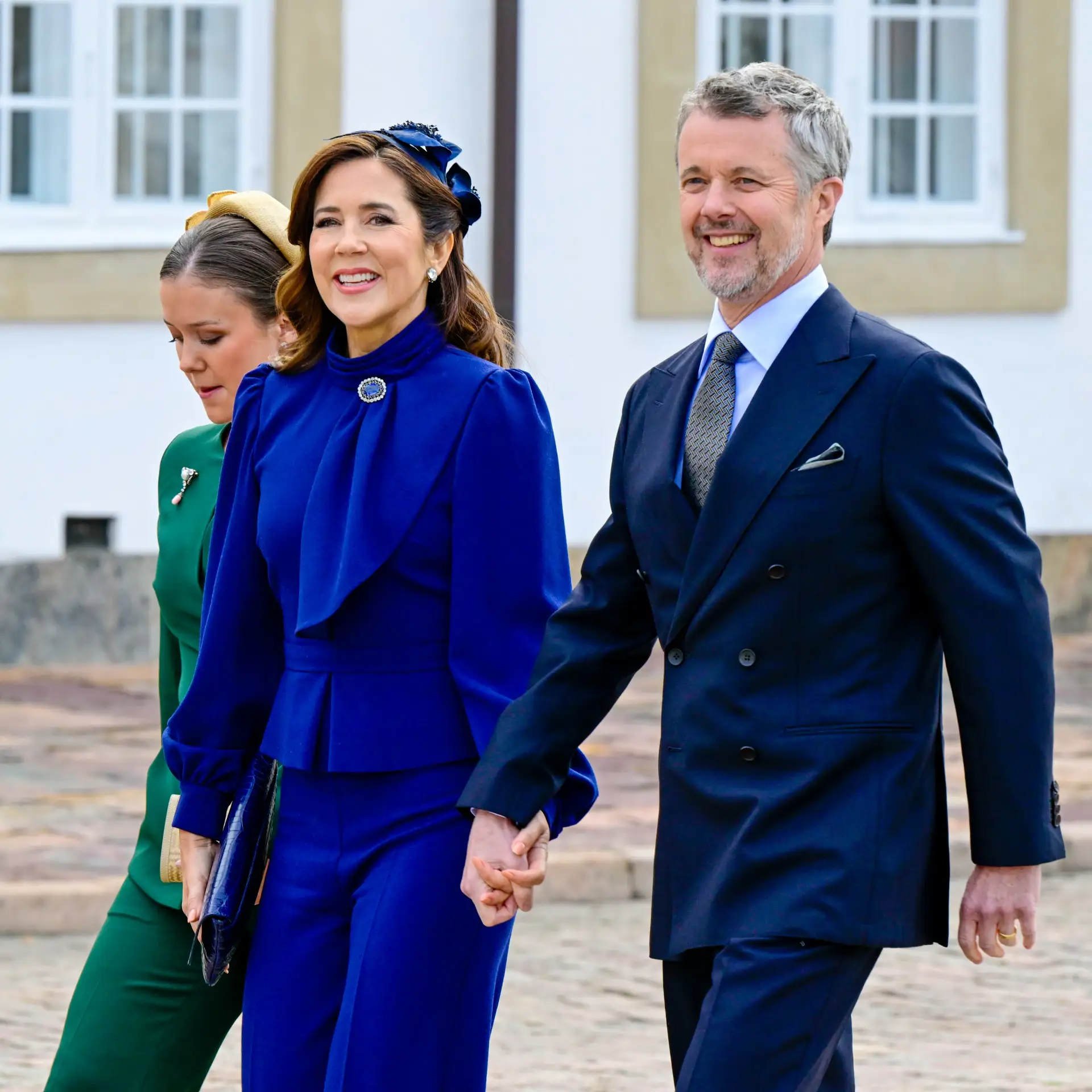 Uno de los colores favoritos de Mary y que elige en muchas de las ocasiones importantes para la familia, es el azul royal. Este sábado, lo ha lucido en un conjunto de blusa y pantalón con tocado a juego.