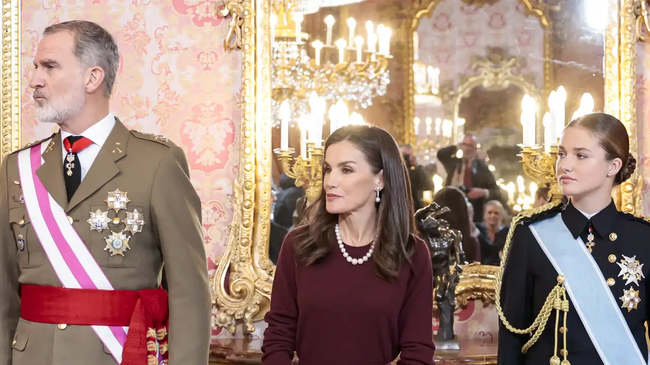 El Rey Felipe, la Reina Letizia y la Princesa Leonor en la Pascua Militar de 2025 en el Palacio Real de Madrid