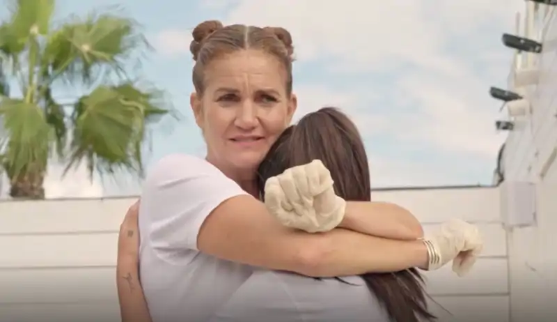 Samantha Vallejo-Nágera abrazando a Isa Pantoja cuando se derrumba al hablar de la relación con su madre, Isabel Pantoja.