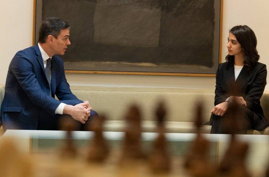 Pedro Sánchez con la ajedrecista iraní Sara Khadem